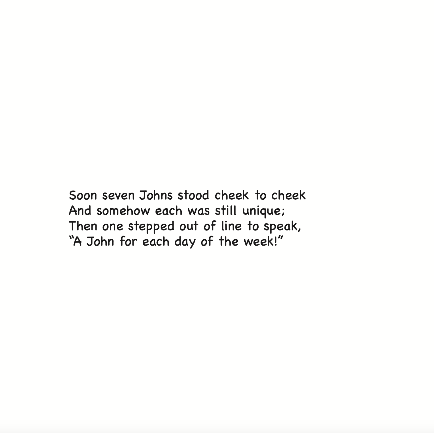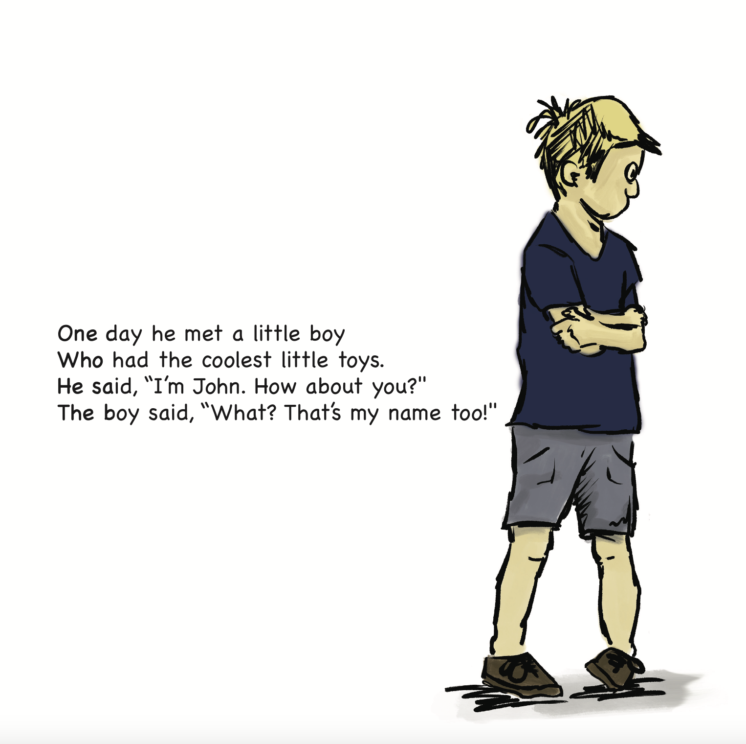 In 2018 we published John’s Johns, a children’s book written by Eytan Nicholson and illustrated by Spike Stone, about a boy named John who meets many other boys also named John.